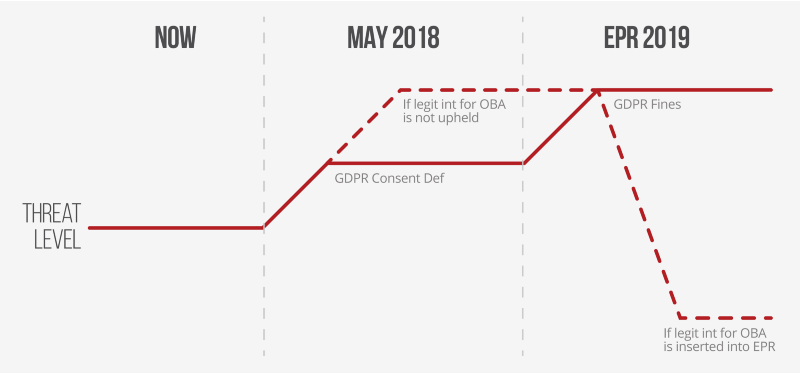 - If Legitimate Interest proves to be unavailable to the media and advertising ecosystem, GDPR would end up effectively requiring consent. In this case, not only must consent be obtained for a much larger set of purposes, but GDPR fines would immediately apply.